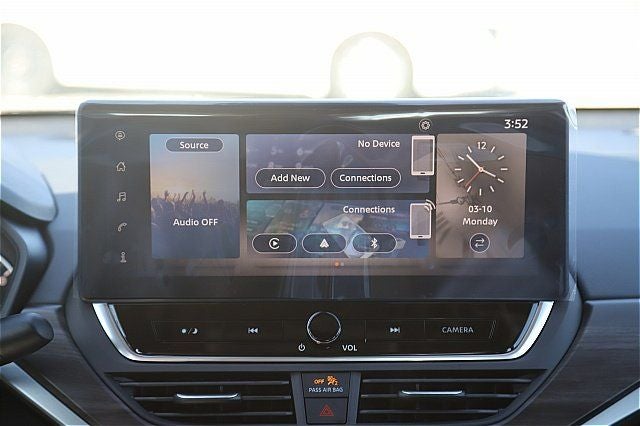 - Radio: AM/FM Audio System -inc: RDS, MP3 and aux-in, 6 speakers, NissanConnect 8" color display w/multi-touch control, Bluetooth® hands-free phone system, streaming audio via Bluetooth®, hands-free text messaging assistant, 2 front illuminated USB ports (1 type-A and 1 type-C) for compatible devices, Apple CarPlay, Android Auto, SiriusXM Radio, Siri Eyes Free, Google Assistant voice recognition and 2 rear illuminated USB ports (1 type-A and 1 type-C)