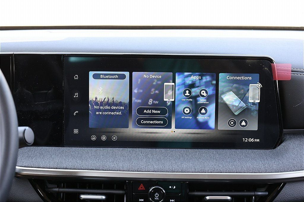 - Radio: AM/FM/SiriusXM Audio System -inc: 12.3" color touchscreen display w/4 speakers, Bluetooth® hands-free phone system, streaming audio via Bluetooth®, NissanConnect featuring wireless Apple CarPlay, wireless Android Auto, Siri eyes free and hands-free text messaging assistant, audio and Bluetooth® steering wheel switches