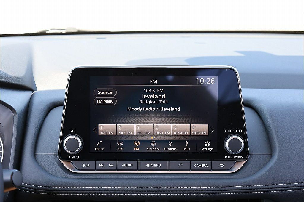 - Radio: AM/FM NissanConnect -inc: 6 speakers plus 2 tweeters, Apple CarPlay, Android Auto, 8" color touch screen display, Bluetooth®, 2 front USB type-C, Wi-Fi hotspot and NissanConnect Services powered by SiriusXM