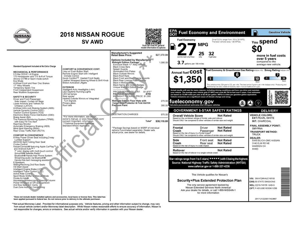 This Nissan Rogue SV Midnight Edition AWD is a Nissan Certified Select vehicle, meaning it has undergone a rigorous 84-point inspection and comes with 24/7 roadside assistance and one complimentary maintenance visit. You can trust that this SUV has been meticulously cared for and is ready to provide years of reliable service.