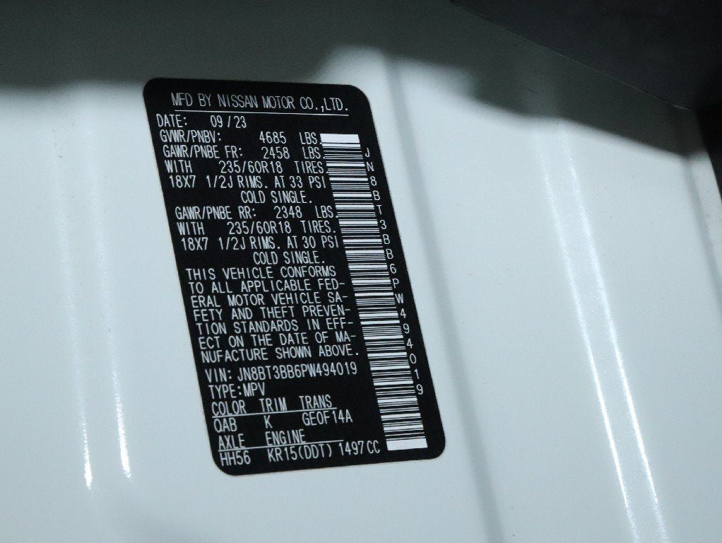 - VIN: JN8BT3BB6PW494019