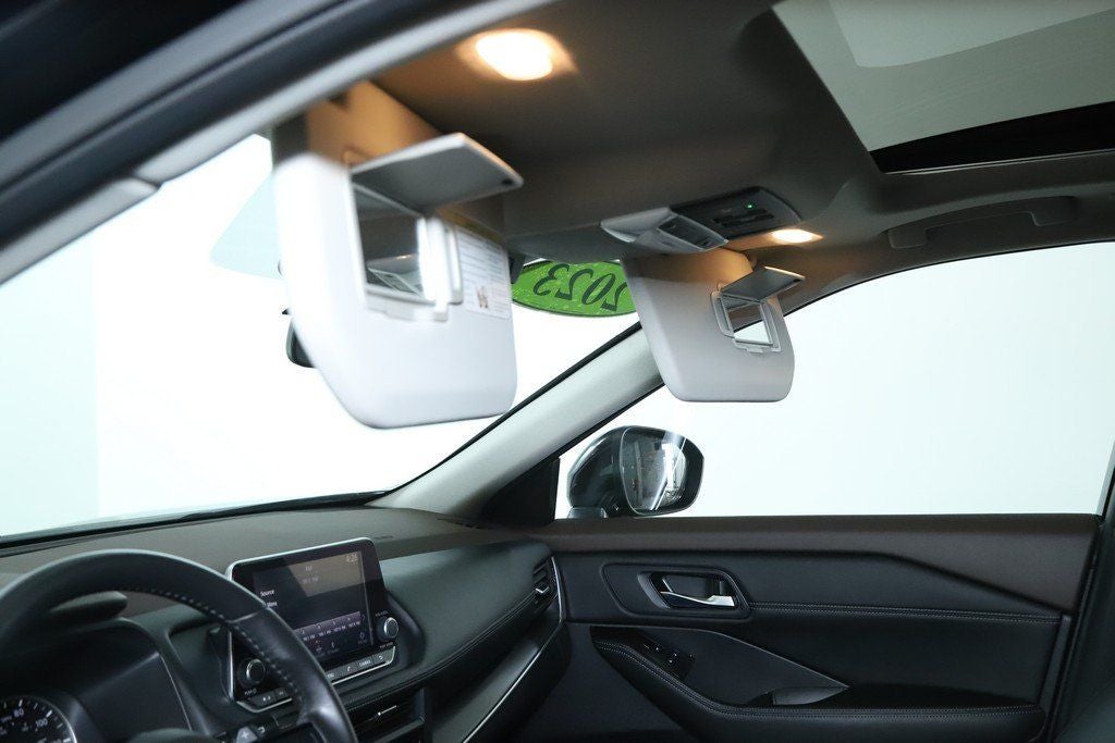 The Midnight Edition Package and SV Premium B Package further enhance this Rogue, adding a striking black gloss V-motion grille, black lower front and rear fascia inserts, black rear diffuser, black roof rails, and 18 gloss black painted alloy wheels. Inside, you'll find a heated leather-wrapped steering wheel, leatherette door trim inserts with stitch, and rear door sunshades for a touch of luxury.